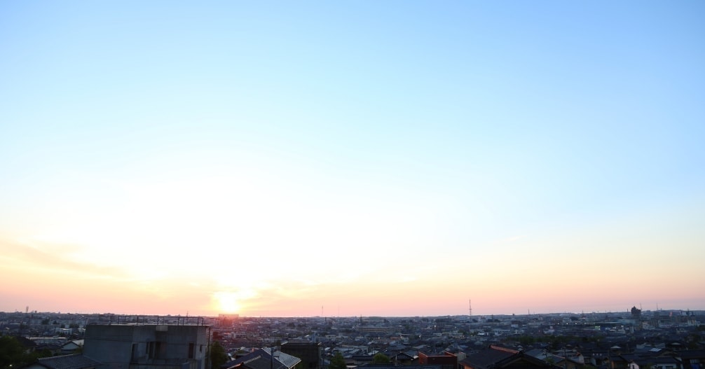 スカイルーチェ金沢アトリエは、金沢を一望する緑豊かな高尾南にあります。街中の喧騒を離れ、小高い丘にあるこの地は、金沢はもちろん、日本海まで一望することができる隠れた絶景スポットとしても有名です。