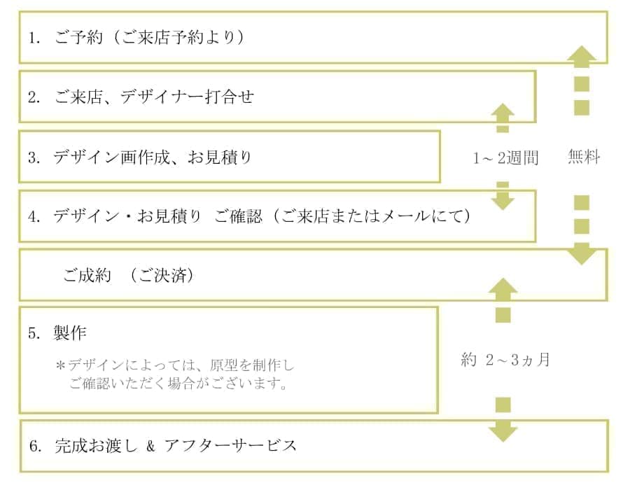 オーダーメイドでの製作は、品質を維持する為、月間5組とさせていただいております。